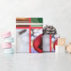 Dez fotos de gatos em papel de embrulho, organizadas em uma colagem de Natal com bordas vermelhas.