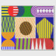 Este papel de embrulho tem um design Bauhaus de formas e linhas fazer colagem em cores primárias e secundárias.