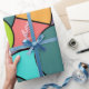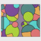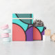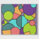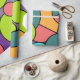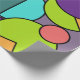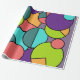 Este papel de embrulho tem um design de círculos, meio-círculos e quadradinhos modernos do século médio, em círculos azuis, verdes, amarelos e rosa.