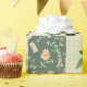 Papel de embrulho rústico aquarela com colcha verde patchwork, padrão geométrico xadrez e flores botânicas vintage. Perfeito para presentes de primavera ou verão para meninas, amantes de boho ou ocasiões de jardim country.