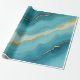Papel De Presente Coleção de Mármore Dourado Azul Turquesa Moderna