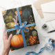 Papel De Presente Colheita Clássica Pumpkin e Florais Pretos