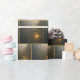 Quedas de chuva de tamanhos variados espalham-se por uma janela, criando um padrão que reflete um brilho quente de luz se difusando através das gotículas no fundo