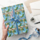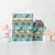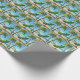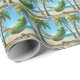 Uma picada antropomórfica verde vestindo óculos de sol está se reclinando em uma rede entre duas palmeiras em uma praia arenosa