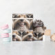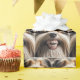Um close-up de um cão Collie barbudo e liso com um pelo longo mostra humoramente que está ralando com dentes parecidos com humanos