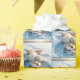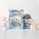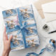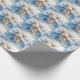 Collie bordado e fofo deita de costas na neve criando um anjo de neve