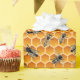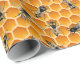 Embrulhe lembrancinhas e produtos apícolas em uma ilustração detalhada de colônia de abelhas melíferas sobre uma grade de favo de mel em cores de mel dourado. Crie presentes lindos para chá de bebê, lembrancinhas de casamento e decorações, ou embrulhe potes de mel e cera de abelha como presentes para familiares e amigos.