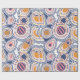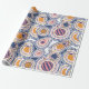 A vibrant abstract pattern featuring layered organic shapes inspired by fruits, outlined with flowing contour lines.
