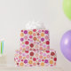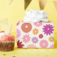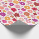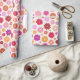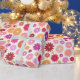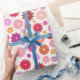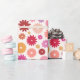 Colorful flower pattern in yellow, orange, pinks, lilac and reds on a cream color background.