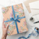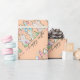 The image features three pastel-colored bunnies sitting in a row, each adorned with a large bow on the back of their necks. The bunnies are decorated in a mix of soft colors including pink, blue, yellow, and green. The bunny on the left has a peach-colored bow, the middle bunny has a blue bow, and the bunny on the right has a peach-colored bow. Surrounding the bunnies are various pastel-colored flowers and green grass. Below the bunnies, the text "happy easter" is written in a cursive font. The background of the image is peach, which makes the pastel colors stand out vividly. This image captures the festive and cheerful spirit of Easter with its bright and playful design.