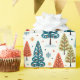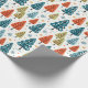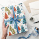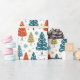 Make your holiday gifts merry and bright with this colorful wrapping paper! Stylized evergreen trees in blue, green, gold, and orange, interspersed with snowflakes, gives a retro-modern look to this paper.