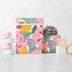 Um padrão floral muito simpático com um primavera inclui lindas flores rosa num design estilizado juntamente com um verme magenta cor-de-rosa escuro e flores amarelas menores. Além disso, folhas verdes escuras e claras são incorporadas à design. Tudo por um belo papel de embrulho que é bom para seus presentes em muitas ocasiões, incluindo aniversários e eventos especiais.