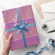 O papel de embrulho para comemoração em um lindo padrão de brilho brilhante colorido de cor roxa roxa brilhante Faux é apresentado neste presente.