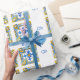 Azulejos azuis de Cobalto mediterrânicos Oh papel de embrulho de bebê. Colorido.