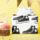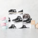 Par de tênis pretos sobre fundo branco. A cor de fundo pode ser alterada.