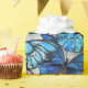 Composição vertical de borboletas de morfo realistas, azuis e brancas sobre fundo texturizado de cinzas. Borboleta azul Morpho.
