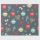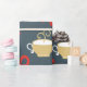 Xícaras colorido e bonitos arcos flocos de neve dourados e confundidos sobre fundo de cinza. Modelo de papel de embalagem personalizável
