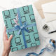 Este papel de embrulho tem um médio de quadrados moderno século design com uma linha e uma linha de círculos, todos negros, se repetindo sobre o design num campo de espuma. Se você gosta do design, mas prefere cores diferentes, me mande mensagem.