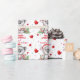 O padrão fofo neste papel festivo de embrulho de Natal é de um adorável ursinho coala vestindo um chapéu vermelho de Papai Noel e segurando uma bengala vermelha e branca listrada. Entre as imagens de urso está o seu texto personalizado em vermelho. Tudo é colocado sobre um fundo de confete de bola redonda multicolorido que é aspergido com corações vermelhos. Este é um trabalho perfeito para avós, pais, tias e tios enrolarem presentes familiares. Faça-o dizer o que quiser!