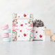 O padrão bonito neste festivo papel de embrulho de Natal é de um pequeno unicórnio colorido vestindo um chapéu vermelho de Papai Noel e segurando uma bengala vermelha e branca listrada. Entre as imagens do unicórnio está seu texto personalizado em vermelho. Tudo é colocado sobre um fundo de confete de bola redonda multicolorido que é aspergido com corações vermelhos. Este é um trabalho perfeito para avós, pais, tias e tios enrolarem presentes familiares. Faça-o dizer o que quiser!