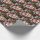 Biscoitos festivos em forma de Papais noeis, renas, estrelas e sinos são dispostos em uma placa vermelha com renda suave