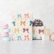 Wrapping paper roll with a cute pattern of bows and polka dots.
