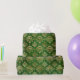 Papel De Presente Cor damasco de Natal Elegante verde e dourada