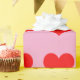 Impresso com um grande padrão de coração vermelho em um fundo de cor rosa personalizada.
