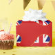 O vermelho e o ouro dos corações de Union Jack bordaram o papel de papel de embrulho do efeito em www.zazzle.co.uk/blubush