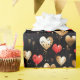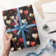 Papel De Presente Corações Dourados e Vermelhos no Luxo Negro