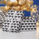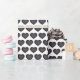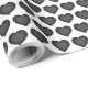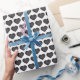 Este papel de embrulho apresenta um padrão repetitivo de corações negros com um esboço sutil.