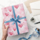 Papel De Presente Corações Rosa Flocos de Neve Natal