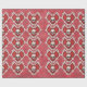Esse papel de embrulho tem padrões abstrato em vermelhos de estrelas com corações vermelhos esboçados com ossos brancos no centro do coração.
