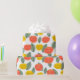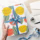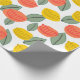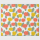 Este papel de embrulho tem um design de flor escandinavo e folhas espalhadas em coral, ouro e verde-sábio.