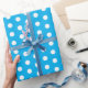 Um passado azul brilhante com bolinhas brancas, uma design divertida para o aniversário, Páscoa, graduação, promoção, aniversário, aniversário das crianças, ocasião especial, celebração, para a família, amigos, seu amigo ponto, colega de trabalho, festa de escritório, festa da lua de cheio, celebrações do equinócio de primavera, estamos vendo pontos! As bolinhas estão em um padrão repetitivo fabuloso. As cores brilhantes trazem bom gosto e sorrisos. Azul é uma cor de refresco mental, sonhos, verdade e harmonia. Azul brilhante se relaciona com a imaginação. Feliz Dia!