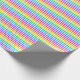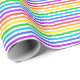 Um papel de embalagem projetado com um padrão listrado com cores brilhantes do arco-íris e branco em largura fina.