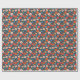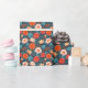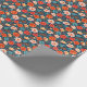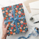Flores vermelhas coral, rosa suave e azuis céus em um fundo azul meia-noite tornam um papel de presente brilhante e lindo para qualquer ocasião.
