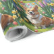 Papel De Presente Corgi Dog Spring Flowers Painting