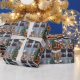 This festive design captures the joyful spirit of the holiday season, featuring an adorable dogs.Nestled in a winter wonderland, complete with a decorated Christmas tree, and beautifully wrapped presents. Snowflakes gently fall, adding a magical touch to the scene, while the vibrant colors of the holiday decorations create a warm and cheerful atmosphere.