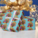 Uma coruja está sentada entre um buquê de flores coloridas num pano de fundo azul