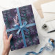 Este papel de embrulho caprichoso gótico apresenta uma margarida roxa texturizada com pétalas em camadas contra um redemoinho cósmico azul-turquesa - arte digital floral vívida perfeita para papéis de parede e impressões. Finalizado em um estilo pictórico de impasto acrílico a óleo.