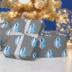 Embalagem para presentes com a cor-de-água, padrão de conchas azuis em fundo de cinza médio