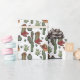 Este divertido e festivo papel de embrulho de Natal Howdy Ocidental apresenta ilustrações desenhadas à mão de botas, chapéus, mitenes, cactos, bagas ocas e estrelas em tons de vermelho e verde. Tudo contra um fundo branco elegante.