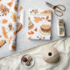 Papel De Presente Cozy Autumn Coffee Cups and Leaves in Warm Earthy