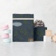 Wrap your gifts in a calm and cozy winter forest pattern featuring pine trees, frozen lakes, and a small wooden bridge set against a deep night blue background.