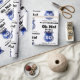 Este papel de embrulho de presente personalizado apresenta um engraçado tema de aniversário de um policial para a 50ª festa de aniversário. Uma imagem de um crachá de policial azul e dourado com aspecto brilhante é impressa no centro, com o ano de aniversário "50" impresso em sua frente em referência ao termo de gíria de cinco graus para policiais. A saudação pode ser lida como "Oh não, é o cinco-o." Um exemplo de mensagem de aniversário feliz é impresso na parte inferior, seguido de um nome de exemplo que você pode personalizar para incluir seu próprio nome personalizado ou texto.