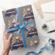Papel De Presente Crânio Cinzas Rosas Douradas Padrão Halloween