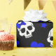 Crânios bonitos, corações, e estrelas em um azul do divertimento contra um fundo preto