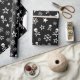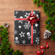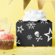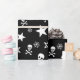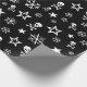 Crânio e crossbones com flocos de neve bonito e estrelas contra um fundo preto.