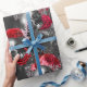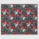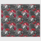 Papel De Presente Crânios e Flores Vermelhas em Cinzas